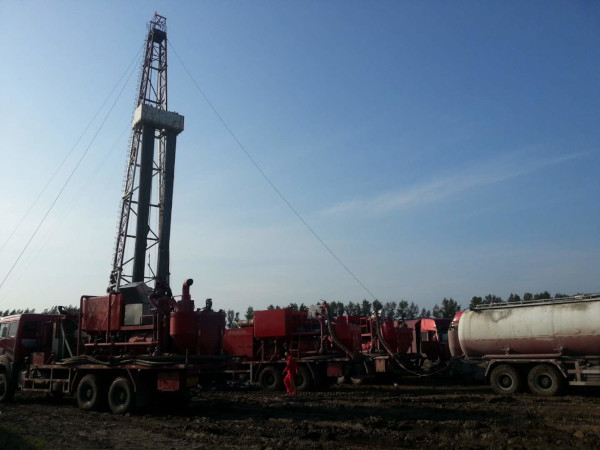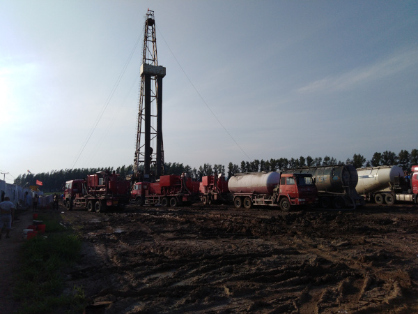 伊22-15-17井,油層套管的固井施工,于2018年7月19日開始,17點(diǎn)30分?jǐn)[好灰罐和泵車等固井車輛,老天眷顧,天氣不錯(cuò),一切準(zhǔn)備就緒。