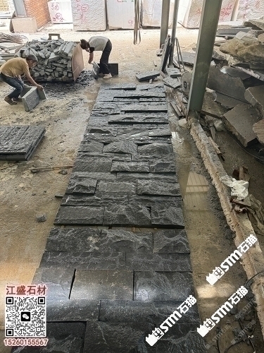 福建654芝麻黑自然面背景墻蘑菇石流水石小方塊石