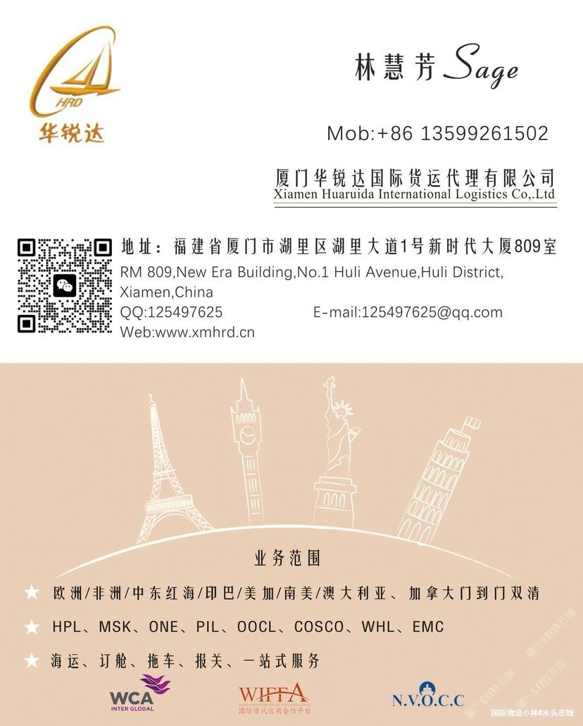 發(fā)布信息: 廈門(mén)華銳達(dá)國(guó)際物流專業(yè)石材國(guó)際運(yùn)輸服務(wù),全面覆蓋歐洲、非洲、中東、印巴(印度/巴基斯坦)、南美、澳大利亞及中亞五國(guó)等全球主要市場(chǎng),確保您的石材安全、高效抵達(dá)目的地 歡迎詢價(jià)13599261502
