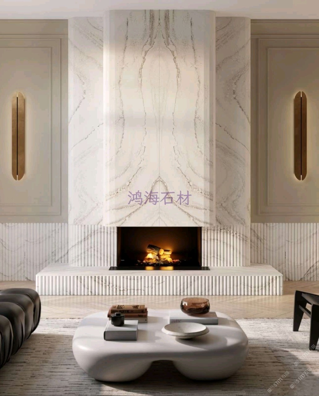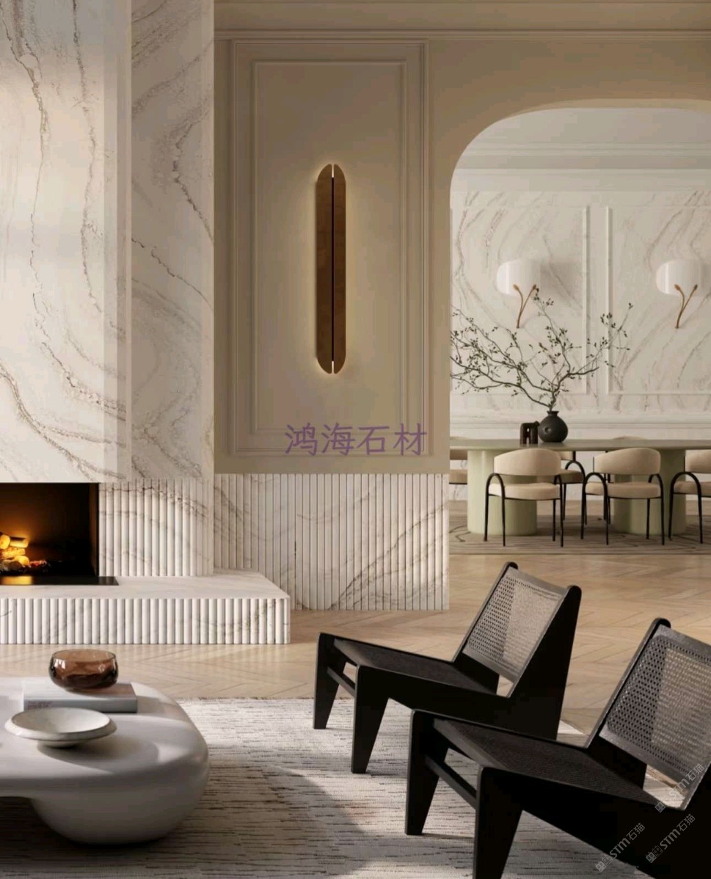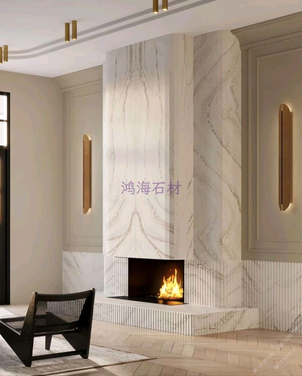 用這面石英石壁爐墻,裝出你想要的「夢中情廳」